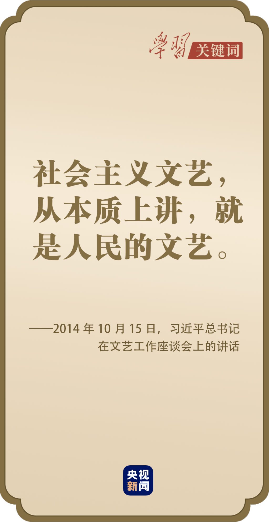 “如果不愛人民,那就談不上為人民創(chuàng)作?!苯o內(nèi)蒙古烏蘭牧騎隊(duì)員、中央美院老教授、中國(guó)戲曲學(xué)院師生回信,給耄耋之年入黨的電影表演藝術(shù)家牛犇寫信,看望參加全國(guó)政協(xié)會(huì)議的文藝界社科界委員……習(xí)近平總書記始終強(qiáng)調(diào)廣大文藝工作者要堅(jiān)持以人民為中心的創(chuàng)作導(dǎo)向,把人民放在心中最高位置。