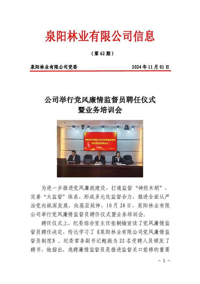 泉陽林業(yè)有限公司信息2024年第62期